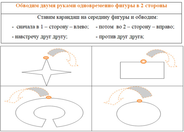 Задания для левой руки (правшам) – написания одновременно двумя руками;