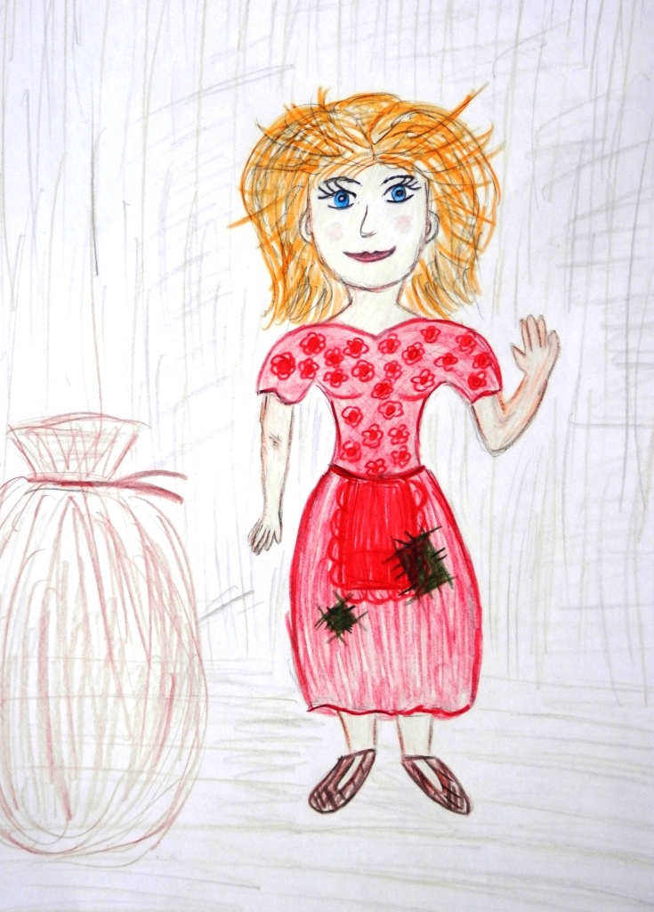Девочка выпустила ее из рук, на землю. Та встала на ножки, отряхивая пыль с платья и волос.
