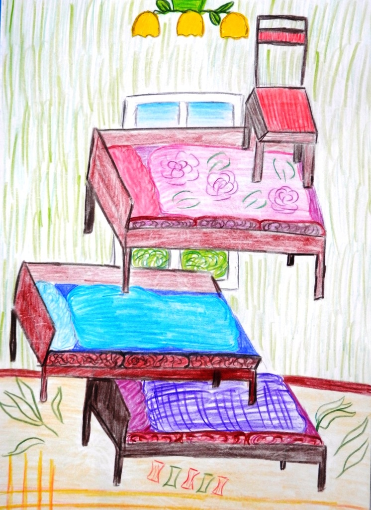 – Три кровати, два стула, один стол, один шкаф, но очень вместительный, вещи, карандаши, бумага, книжки и другая ерунда. Но вы мне скажите, где же самое главное?