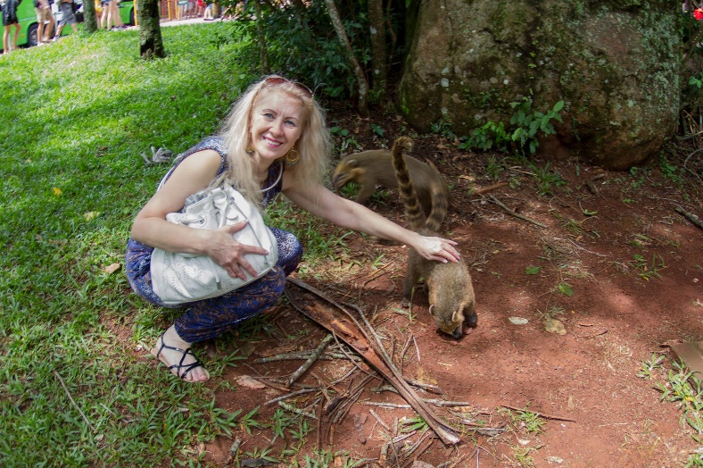 Парк очень огромный, и на его территории водятся различные экзотические птицы, растения и животные. Но самым ручным из всего этого оказался енот-носуха (я так думаю).