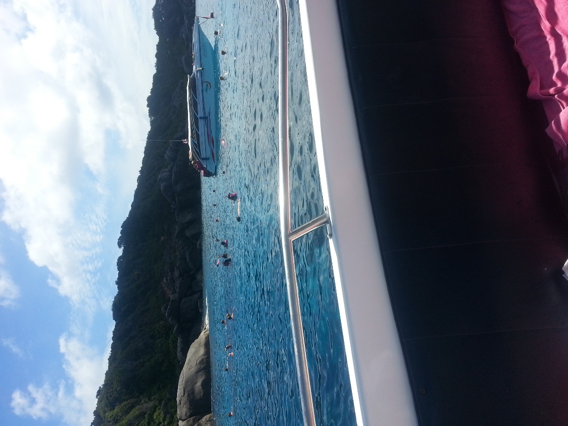 Сели на свой катер, отплыли подальше от берега, одели маски (все кроме меня) и нырнули (все кроме меня).