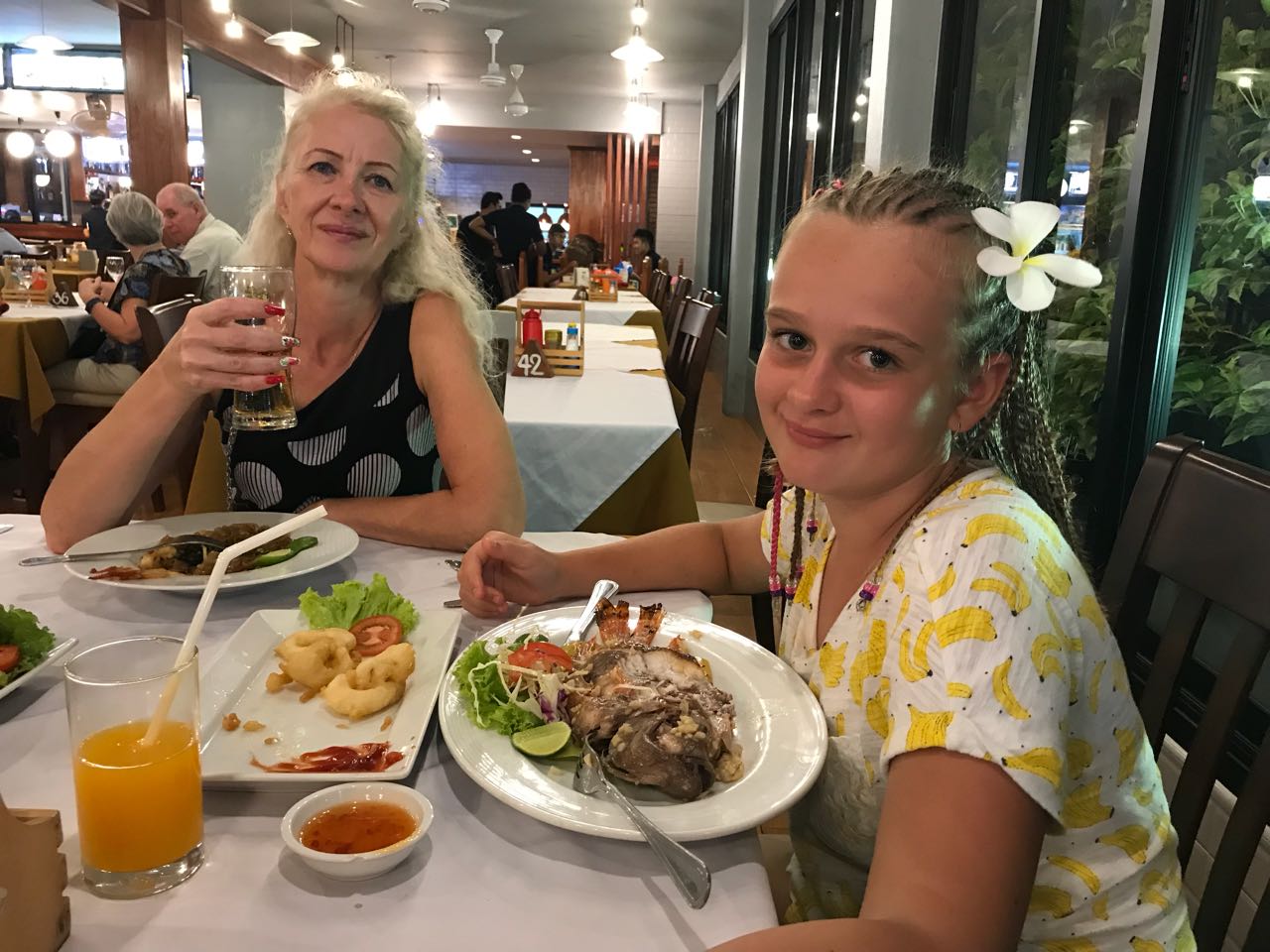 Уставшие, но довольные к семи вечера вернулись в отель, и пошли в кафе ужинать. Еда мне совсем не нравится, наверное, специи не такие.