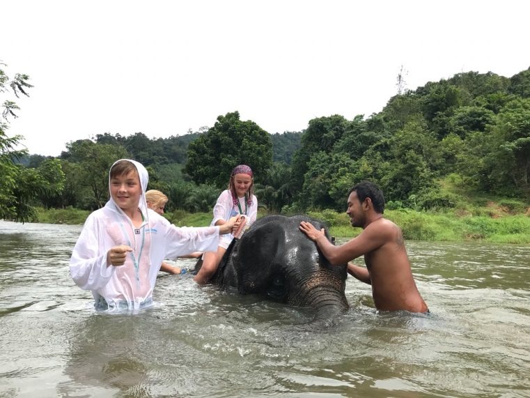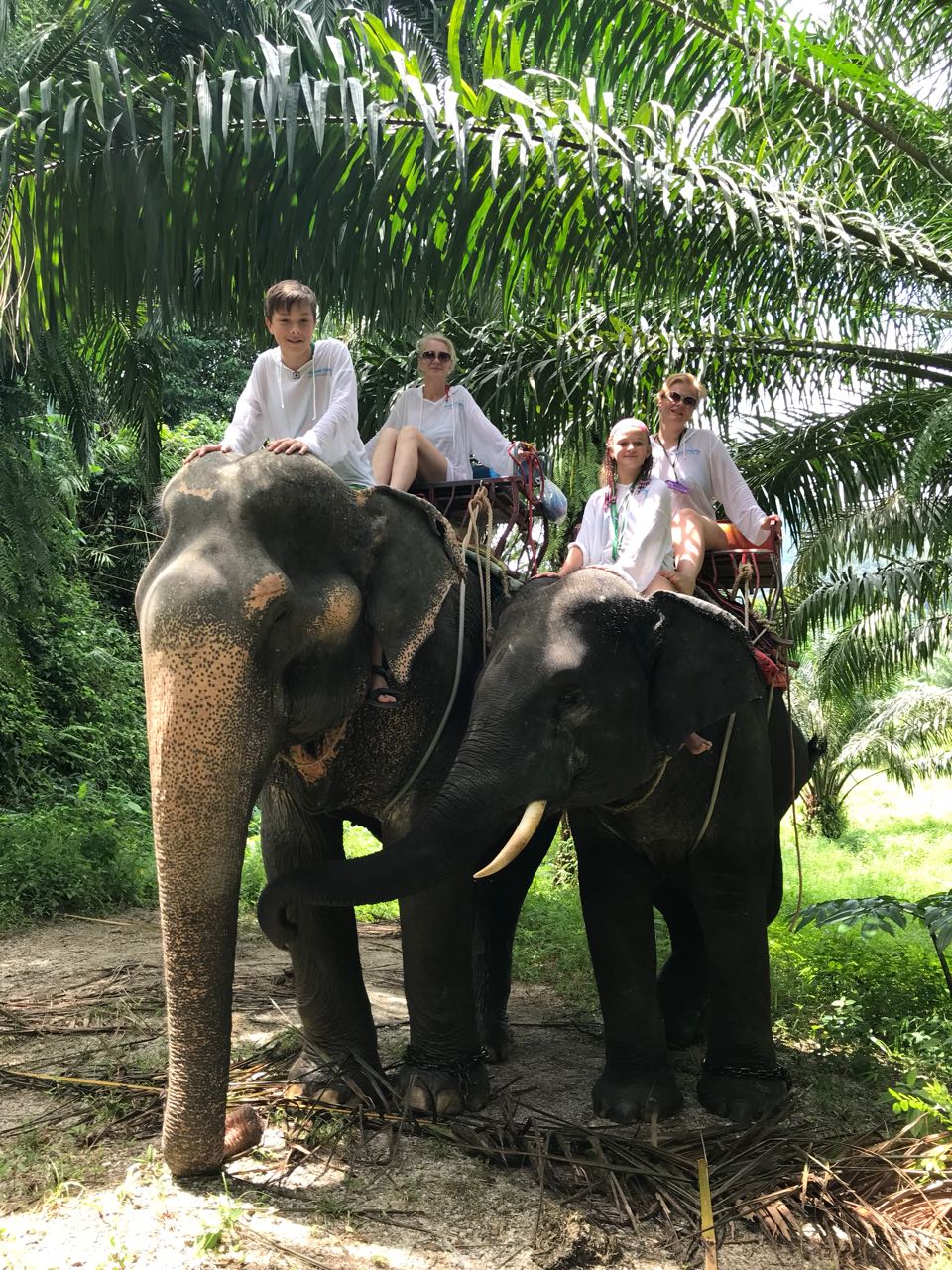 Программа насыщенная. Не успели отойти от слонов, вперед, на тарзанку. Я договорилась, чтобы Дима за меня и за себя прокатился. Доволен как слон.