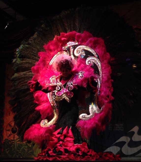 Под конец вышли девушки в карнавальных платьях разного цвета, все из перьев.