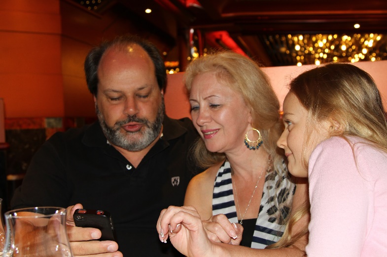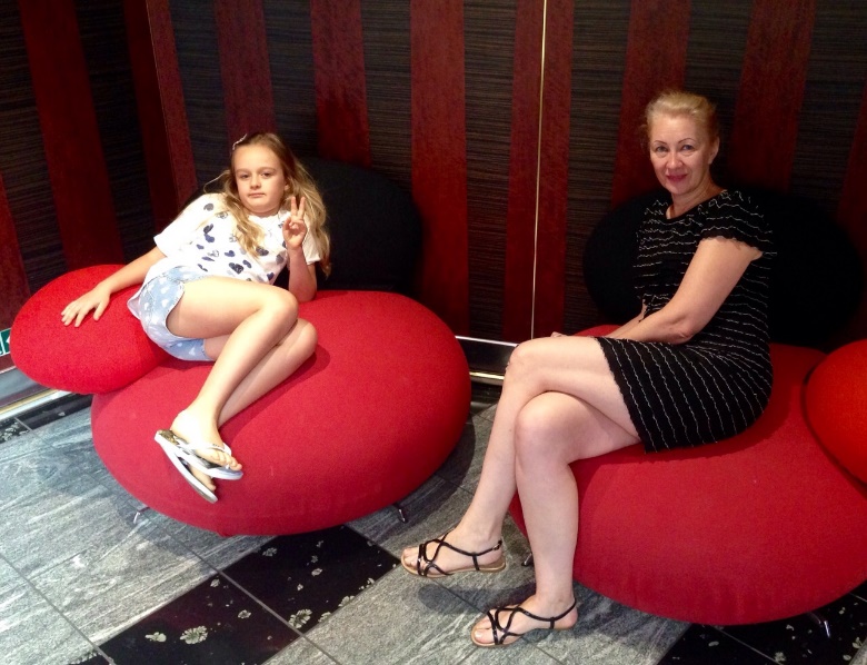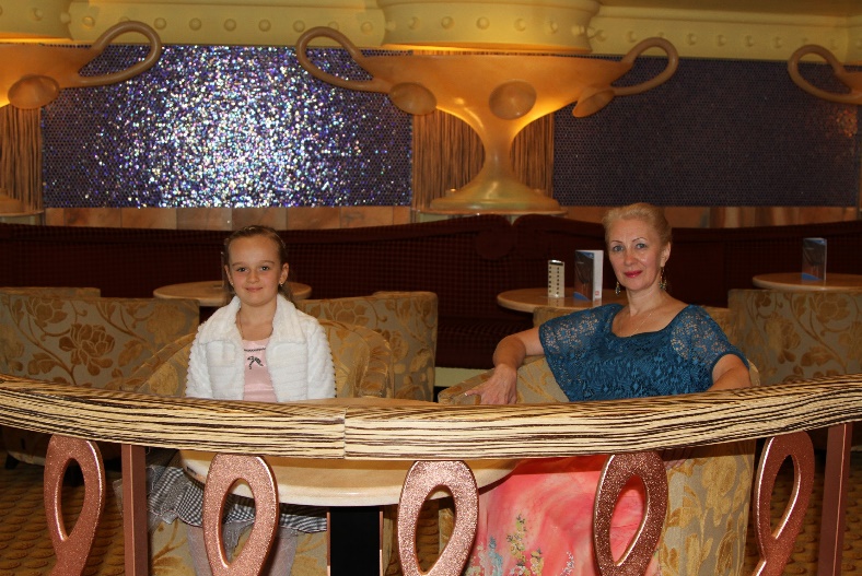 Познакомились с парой русских – это семейная пара с Дальнего Востока с двумя детьми. Они расположились на второй палубе. Парочка с друзьями выгуливались по лайнеру, а детки развлекались, катаясь на лифте.