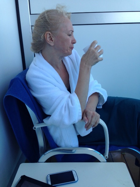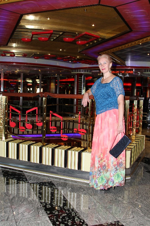 Наш ужин совпал со временем выхода лайнера из порта. И всё было нормально, пока он не стал кренится на один бок. “Ну, ничего”,– подумала я,– “не страшно, видно разворачивается”.