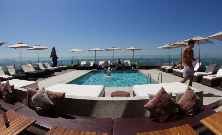 Приехали рано, в номер вселяют только после 14:00. Оставили вещи в камере хранения и поднялись на 20-й этаж к бассейну.