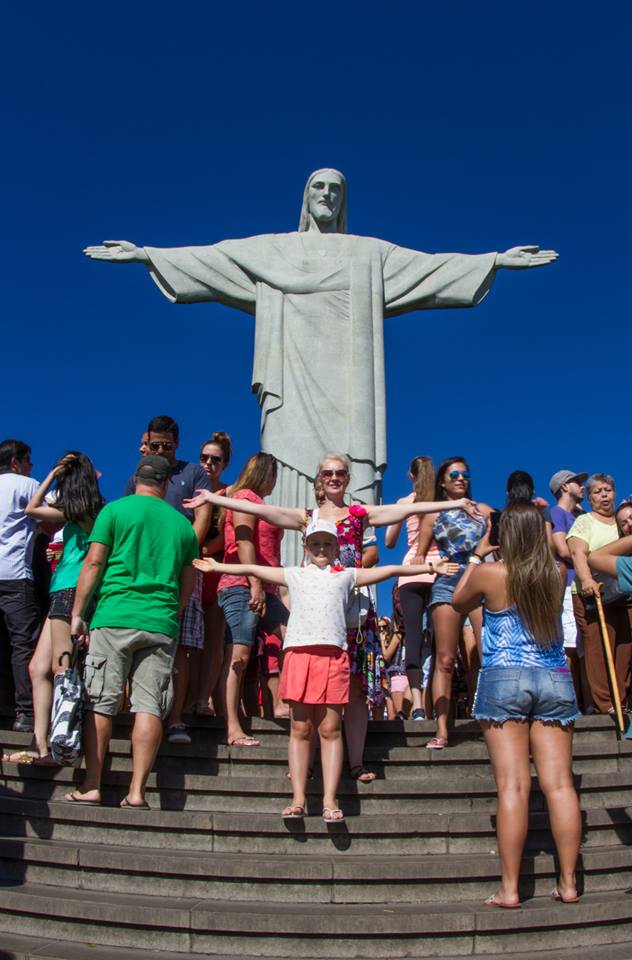 Поезд докатил нас к подножию горы, на которой возвышается Христос. Дальше до статуи можно было подняться на лифте, но мы решили по ступенькам (штук триста, не меньше), так вроде, зарядка и фотосессия.