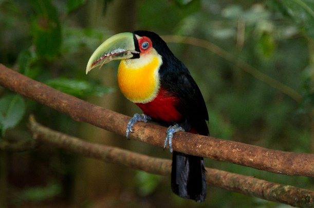 Наткнулись на живого тукана, он позировать не желал и всё время перелетал с дерева на дерево.