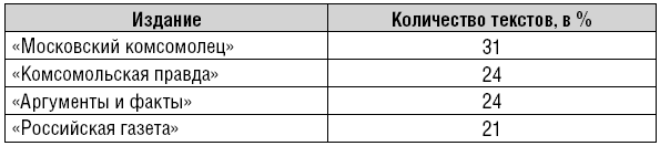 Основные результаты исследования. Общее количество найденных за указанный период текстов распределилось между изданиями примерно в равных пропорциях: