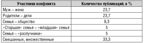 Это свидетельствует об устойчивом интересе газетных изданий к проблематике семейных конфликтов.