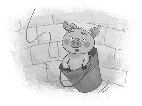 Хозяин исчез из виду. А через секунду ведро дёрнулось и стало медленно подниматься вместе с поросёнком.