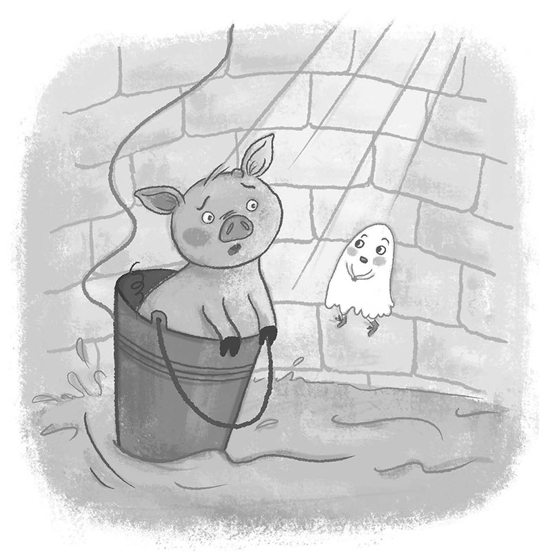Поросёнок с удивлением обернулся и увидел… маленькое, размером с человеческую ладонь, привидение. Точнее сказать, маленького привидёныша.