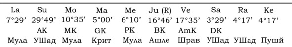 PK гороскопа является Меркурий. Здесь и далее Караки вычисляются из 7 планет без участия Раху.