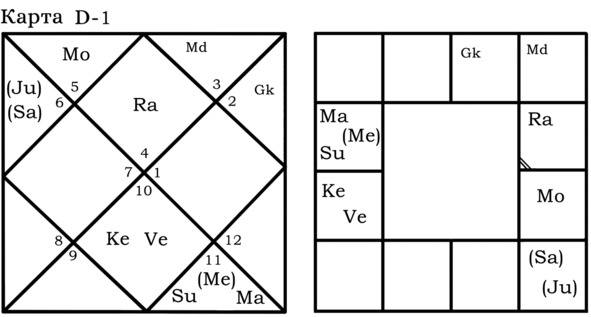 Умер он в период Стрелец – Дева по Чара Даша. В период Стрельца Манди и Гулика аспектировали 1-й дом здоровья, так как все двойственные знаки влияют друг друга.