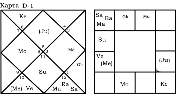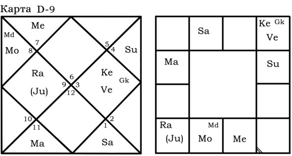 Эти правила должны выполняться в основном гороскопе Раши и в Д-6. Поражения Юпитера в гороскопе Д-9 может относиться к делам брака, а может касаться здоровья. Решающей будет его роль в Д-6.