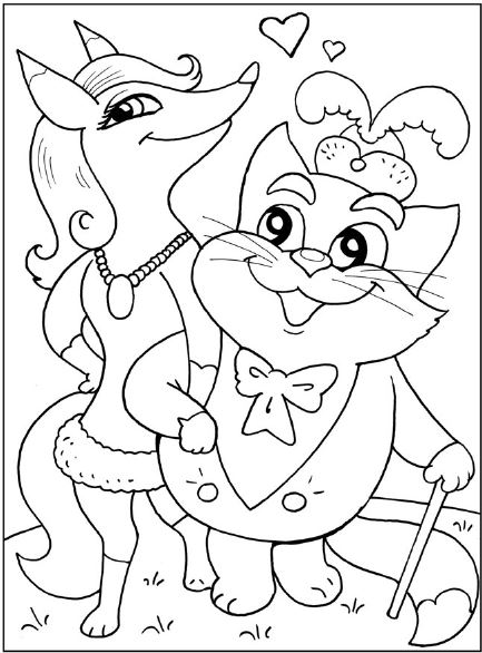 А ленивого кота,Разобидевшись с утра(Видно, что-то он стащил:Мясо, колбасу иль сыр),Прогнала хозяйка вон,Закричав: «Ты плут и вор!»Кот подумал: «Ну и пусть.Никогда к ней не вернусь!»Выгнув спину, хвост – трубой,По дороге по леснойКот пришёл в дремучий лес,Отдохнуть на ёлку влез.Кот был явный оптимист —Непоседа и артист.Только голод всё сильней —Надо б поискать мышей.Слез он с ёлки, огляделся,Что-то съел, но не наелся.Кот впервые был в лесу…Тут увидел он Лису:Рыжая красавицаВ дорогих мехахТак Коту понравилась —Ох! Ах!Но на всякий случайПоднял хвост трубой,Коготки колючие,А в глазах – огонь!Но Лисичке что за дело?На него взглянула смело:«Кто Вы, сударь, и откуда?Прежде здесь Вы не бывали?Вы для нас такое чудо,О котором не слыхали».Кот на задних лапках встал,Шейку лапкой причесалИ сказал Лисичке важно:«Я – герой! Я – кот отважный.Воеводой к вам назначен,Котофей Иваныч, значит.Доложите – кто Вы есть,Я совсем недавно здесь».«Я – Лиса-девица.Мы можем пожениться!Заходите в домик мой —Буду верной Вам женой».Котик рад: идёт всё гладко, —Дал Лисичке свою лапку.А наутро ЛисицаПошла похвалиться:«Я была Лисица и жила одна,А теперь я, звери, мужняя жена.Муж мой служит воеводойИ со всеми будет строгий».Тут с вопросом влез Медведь:«На него бы посмотреть».«Познакомь же нас, Лиса», —Раздаются голоса.«Хорошо! Я познакомлю.Но он любит мясо с кровью, —Это просто мой совет…Приходите под обед,Все подарки положите,Сами дальше уходите.Лучше спрячьтесь кто куда,А иначе вам – беда.Котофей Иваныч строг —Будет вам тогда урок!»Звери в лес – пошла работа,На смотрины всем охота.Уток, курочек носили,Аккуратненько сложили.А Медведь принёс быка —Эта ноша нелегка…Волк барана притащил,У пенёчка положил.Сами дальше притаилисьИ сухой листвой укрылись.Ждут. Затихли чуть дыша.Видят вдруг: идёт Лиса,А с ней маленький такой,И не страшный, и не злой,Им неведомый зверёк —То ль барсук, то ли хорёк.Котофей увидел мясо,Засветились оба глаза,Закричал свирепо: «Мяу!»,Начал мясо есть, урчит.Звери испугались: «Мало?»Ох, изрядный аппетит!Испугавшись, задрожали,Листья громко зашуршали…Кот услышал шорох этотИ подумал: мышка где-то,Прыгнул, что-то зацепил,Волк от боли громко взвыл,Как безумный, побежал,А Медведь и ждать не стал,Выскочил – и наутёк,Зацепился за пенёк…Но и сам испуган Кот,Тоже места не найдёт.Только хитрая ЛисаОдна не растерялась,Мужа своего нашла,Довольно рассмеялась:«Котофей Иваныч,Собирай подарки,Видишь, сколько мясаОставлено для жарки».И теперь тот славный КотВ том лесу с женой живёт,Воеводой служит,Ни о чём не тужит.Лисичка со скалочкой