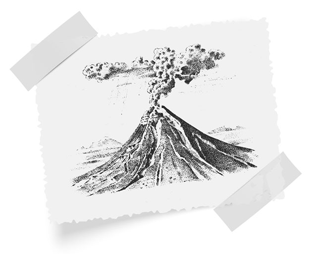 – Посмотрите наверх, овраги мы уже не видим – они заполнены экструзией, то есть вязкой лавой, и льдом. Наш вулкан – стратовулкан, или, по-другому, слоистый вулкан в виде конуса, который состоит из множества слоев затвердевшей лавы, туфа и вулканического пепла.