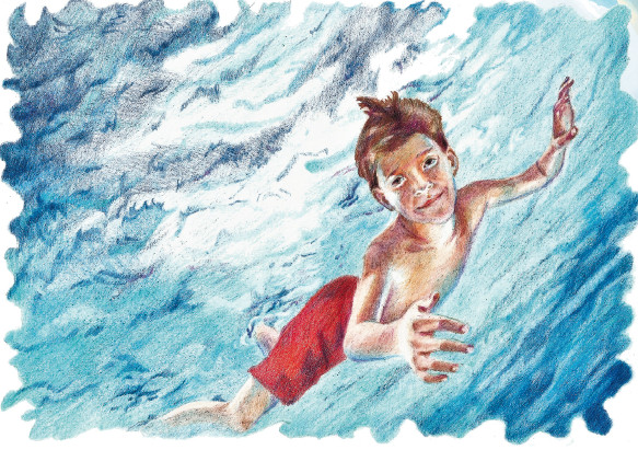 На дворе была жара:Душно с самого утра,Не спасала даже тень,Мы купались целый день.Друг в бассейн ходил зимой,А теперь – на пруд со мной,Чтобы форму не терять,Стал ребят тренировать.Предложил сначала мне:«Будешь плавать на спине!Держит нас сама вода —Не утонешь никогда!»На воде мы разлеглись,Только что-то тянет вниз,Быстро я на дно пошёл —И запал у нас прошел.