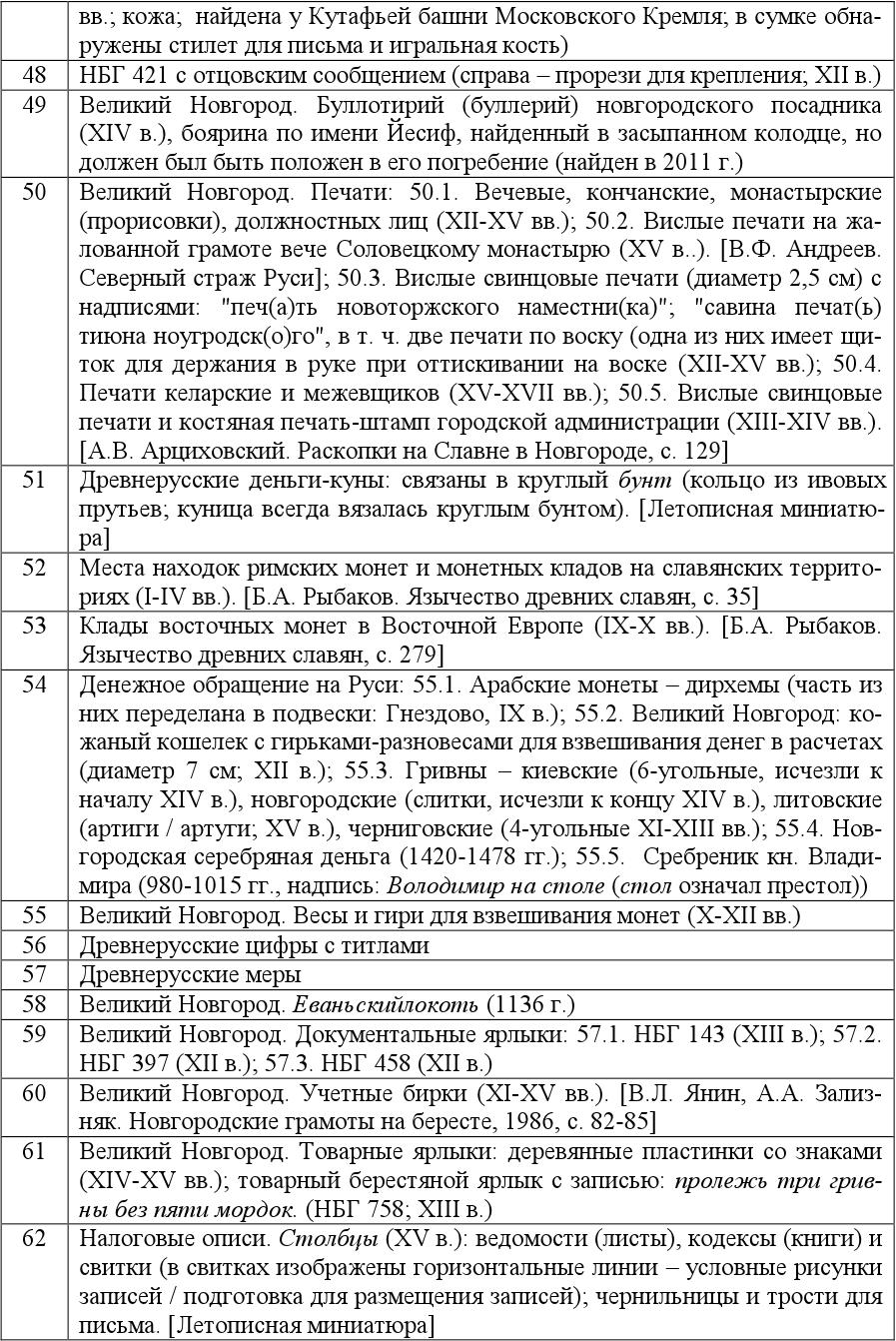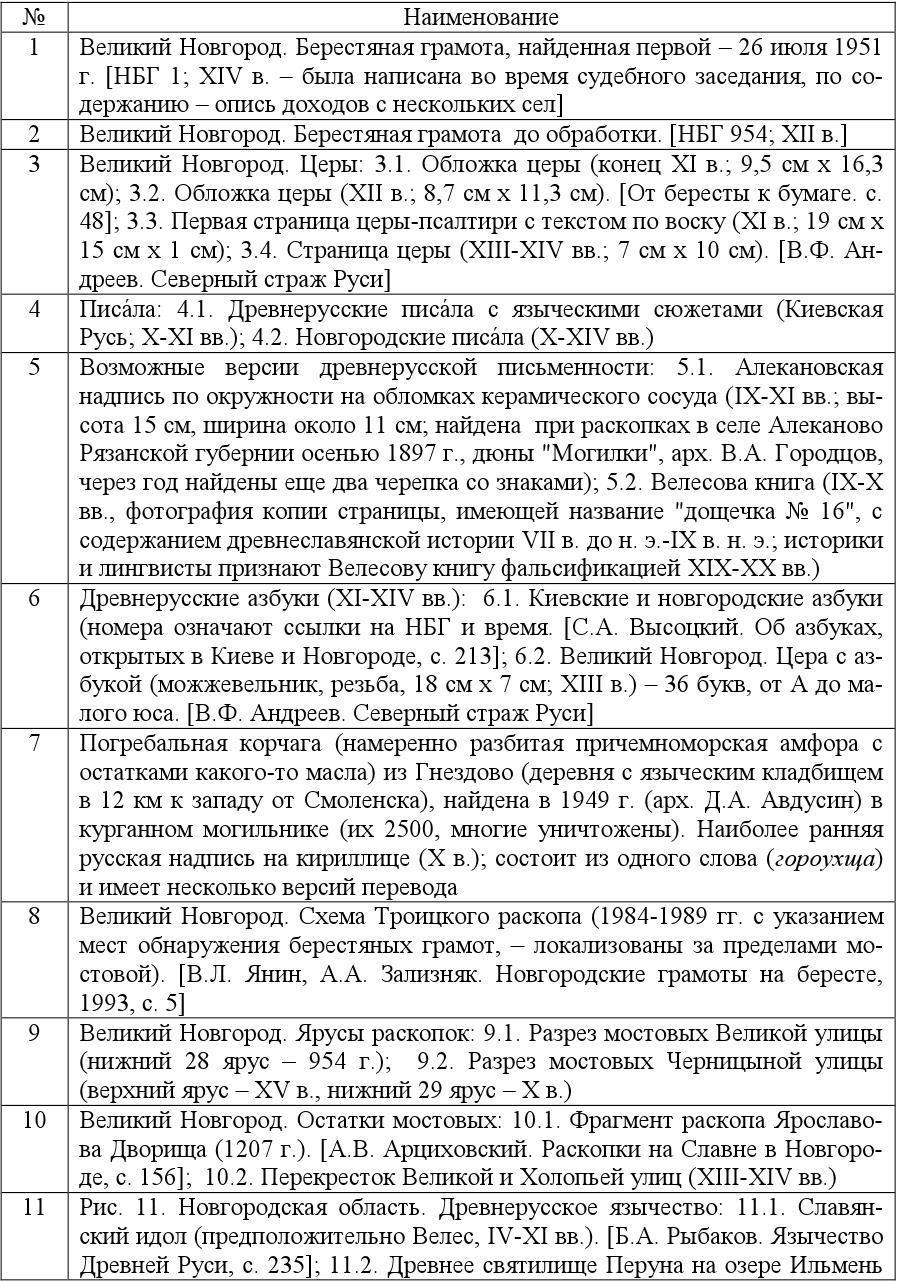 4. СПИСОК НОВГОРОДСКИХ БЕРЕСТЯНЫХ ГРАМОТ (по Приложению 1)