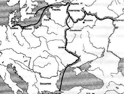 • Балтийско-Волжский путь: Германия, Скандинавия, Прибалтика, Ладога, Новгород, Волжская Булгария (начало ветви маршрута к ней определено в современной Московской области);