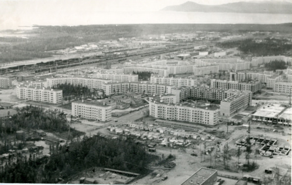 Жилой массив города состоит из двух микрорайонов с 2—3 тыс. жителей, с детскими садами и яслями, общественным центром, учебными заведениями с общежитиями и парком со спортивным комплексом. Общественный центр посёлка формируют три комплекса: общественно-культурный, торгово-бытовой и привокзальный, расположенные на главной улице. Общественно-культурный комплекс включает в себя здание ГК КПСС и горисполкома, общественный центр с залом на 700 мест с театральной сценой и широкоформатной киноустановкой, библиотекой на 50 тыс. томов. Сюда же войдут Дом пионеров, гостиница (*не успели построить из-за перестройки, примечания редактора). Центральное местоположение, многофункциональность, соседство с парком, расположение всех основных транспортных и пешеходных направлений позволяют считать этот комплекс и примыкающую к нему площадь главными в системе жилого массива.