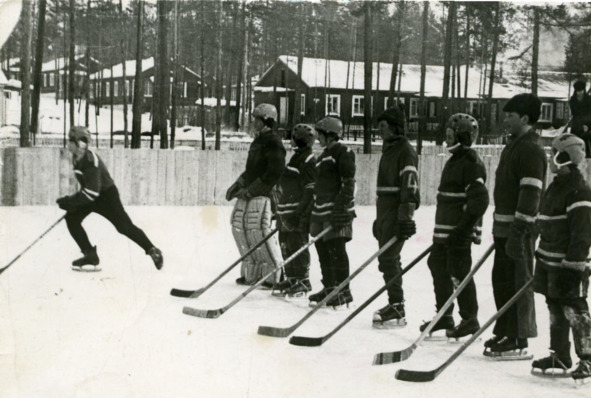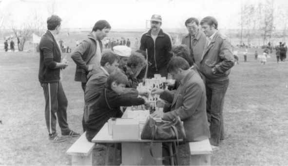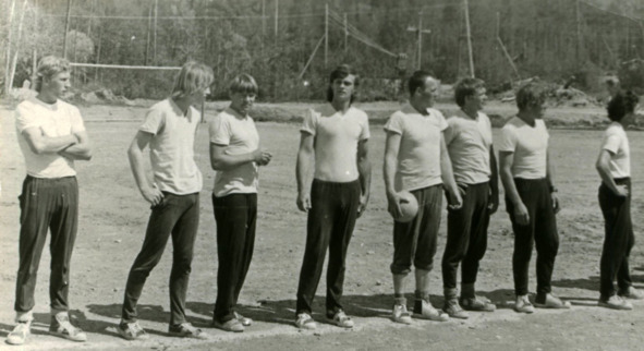25 февраля 1979 года. Первенство района среди школ. Игра с командой из Нижнеангарска. Ваня Каратеев, Игорь Полянский, Андрей Ушаков, Витя Чернышов, Андрей и Женя Крутьяко, Андрей Накота, Сергей Каврилов