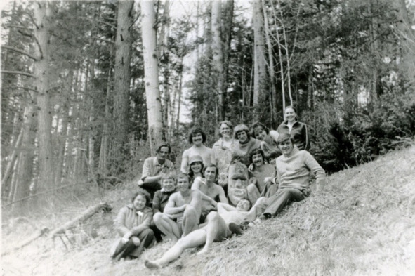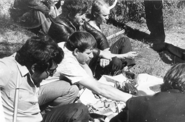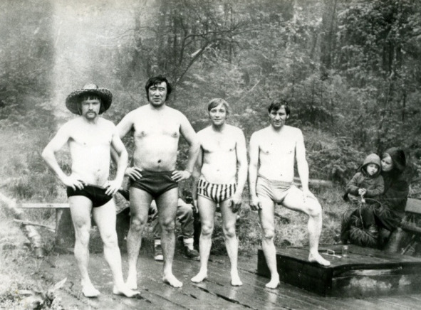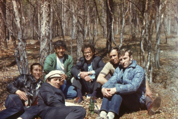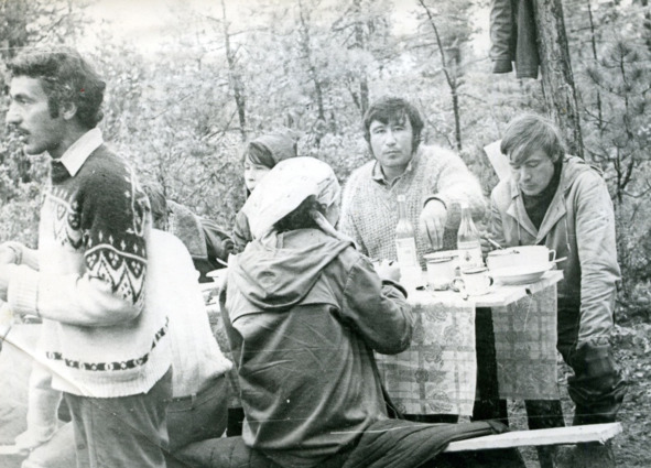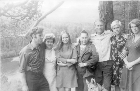 1978 год. Река Тыя. Слева направо: Алексей Андреев, Зоя Бородуллина, Екатерина, Зоя Лесникова, Евгений Киселёв, Альбина Кошпаева, Татьяна Андреева