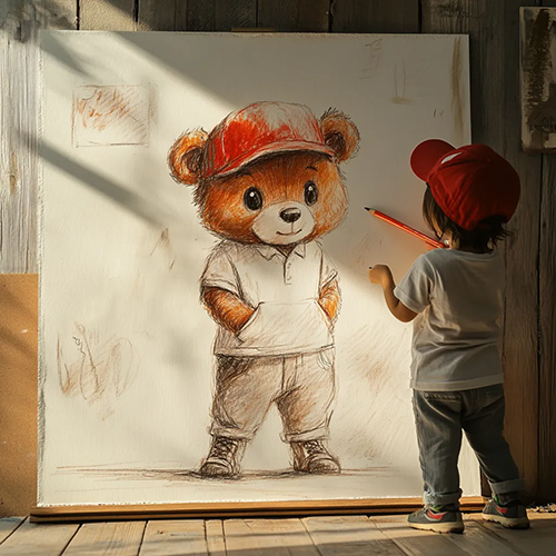 И пририсовала Медведю белую футболку, серо-коричневые брюки и красную кепочку.