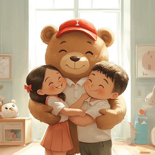 Однажды Петя, Марина и Наташа собрались вместе, взяли самый большой лист бумаги, размером почти как они сами, и стали дружно рисовать. Сначала на бумаге появилась большая голова, потом туловище с лапами, добрые глаза и широкая улыбка. Дети аккуратно закрасили мордочку и лапы коричневым карандашом. Подправив ещё пару деталей, они некоторое время с удовольствием смотрели на получившийся рисунок Медведя. Этот большой красивый бурый Медведь соединил в себе все лучшие черты их пап.