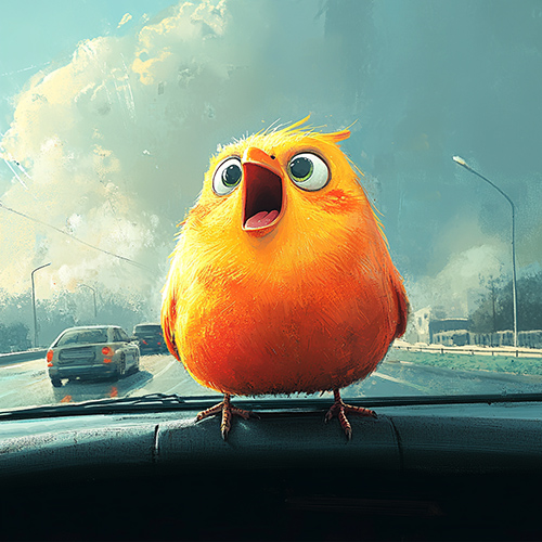 Ориентироваться в дороге Негабаритычу помогала Птица-Говорун – его навигатор. Она всегда подсказывала маршрут: «Поверните направо, а теперь налево. 50 километров прямо», – это всё её слова. Так и в этой поездке она вовремя предупреждала Медведя.