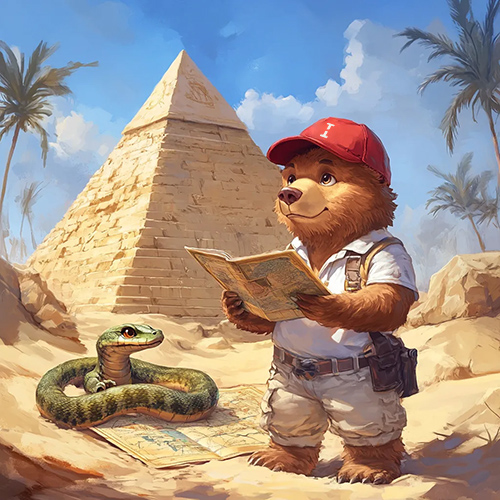 Негабаритыча эти завывания не пугали: он был бесстрашным Медведем, и довезти пирамиду согласился без колебаний. Он получил заказ и отправился к логисту, Кобру Удавычу, чтобы тот проложил ему маршрут. Всё же, с негабаритным грузом не везде проедешь!