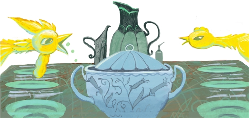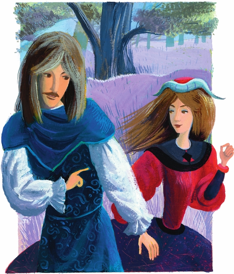 – Увы, милая жёнушка, никого я по дороге не встретил, кроме двух крошечных птичек, что скакали по ветвям да весело чирикали.