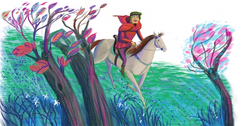И вот случилось однажды так, что принц отбился от своих друзей и заблудился в лесу. Скитался он целый день по лесной чаще, а как начало темнеть, забрался на самое высокое дерево и принялся высматривать дорогу. Однако вокруг, куда ни кинь взгляд, были лишь верхушки деревьев.