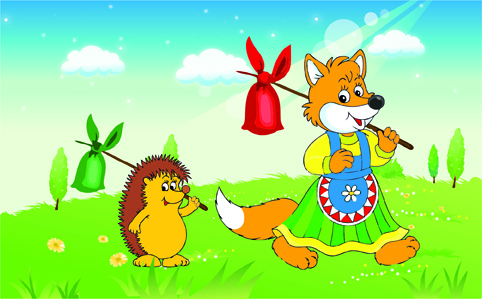 Лисички побежали к речке ловить рыбу, чтобы поменять её на хвост. Каждая поймала рыбку и говорит ей: – Поменяю тебя на хвост для лисёнка. Отвечают рыбки лисичкам: