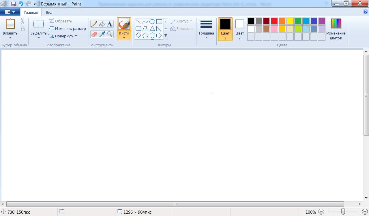 Выполните команду Пуск – Все программы – Стандартные – Paint. Откроется окно приложения графического редактора Paint.