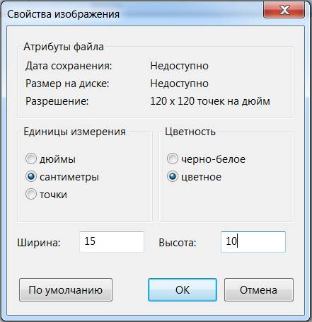 Установите единицы измерения сантиметры, установите значение в поле Ширина 15, значение в поле Высота 10. Нажмите кнопку ОК.