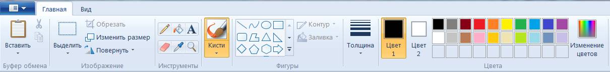 Панель инструментов графического редактора Paint содержит две вкладки: Главная и Вид.