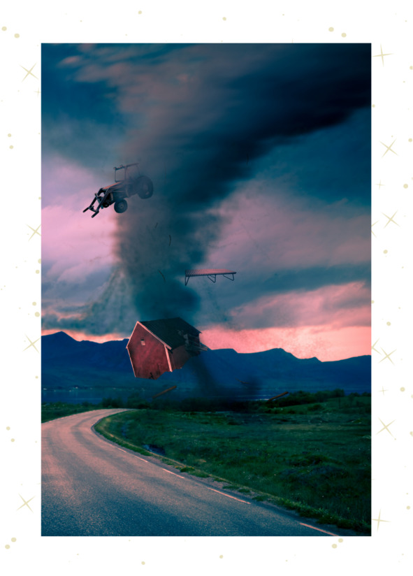 Элис очень испугалась, забралась на свою кроватку, накрылась с головой одеялом, и так просидела пока не почувствовала, что её вместе с домиком оторвало от земли и понесло в неизвестном направлении.