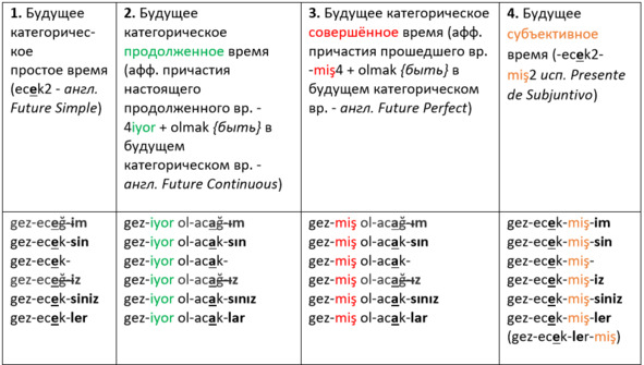 1. Группа будущих времён (1-й тип времён – личные аффиксы, как в настоящем продолженном вр.)