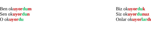 Ayakkabı.. (мн. ч. + притяжательный афф. + винительный пад.) (мою обувь) giymek.. (я обуваю) ve (и) giyinmek.. (одеваюсь).