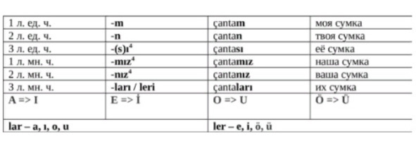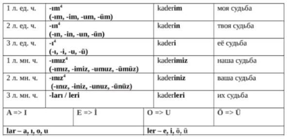 Притяжательные аффиксы краткой формы
