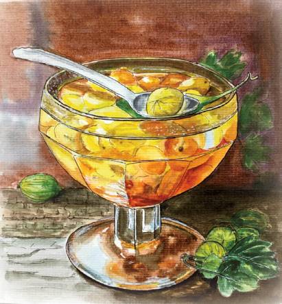 Правда, и всякое другое свежесваренное варенье появлялось на дачном столе очень часто. Но почему-то именно крыжовенное считалось главным и самым вкусным. У него было и название – «царское». Гостям с удовольствием открывали его секрет. Важно, чтобы крыжовник не перезрел, вишневые листья добавлялись в варенье только мелкие, и на ягоде, заполненной прозрачным сиропом, должен быть незаметен надрез, через который извлекались зернышки. Самое главное в рецепте – отсутствие зернышек внутри ягод.