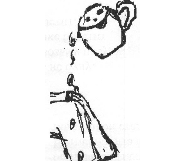 Чашка, как же так?Я пью, ты кап-капНа штанишки мои.Попадёт тебе, смотри!
