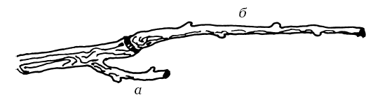Рисунок 4. Плодовое звено весной после обрезки: а – сучок замещения; б – плодовый побег