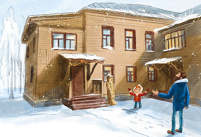 – Дядя Кузя, как хорошо, что ты пришёл! Пожалуйста, не снимай куртку и шапку, вместо перчаток надень непромокаемые варежки, и пойдём скорее во двор.