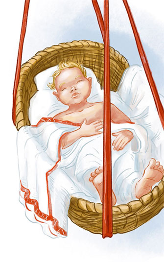 – Этот малыш и есть Паккайне. Его отец – купец – возвращался с торговым обозом домой в Олонец. В пути 1 декабря прямо в санях у его жены родился мальчик – сильный, здоровый и некапризный. Нипочём ему крепкий мороз, спит и видит сны.