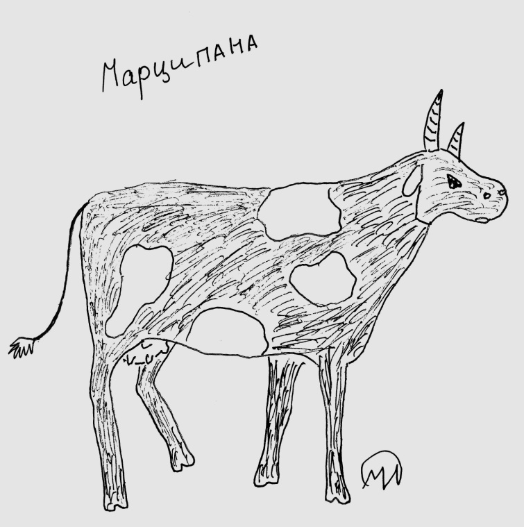 Барминцева принялась разглядывать табличку. Да, действительно, эту дурнопахнущую гору неразделанной говядины звали Марципана, от роду ей было четыре года, и её родители имели целую кучу международных коровьих дипломов. А в самом низу таблички Барминцева прочитала загадочную приписку о том, что отёл ожидается 28 ноября.