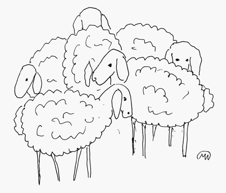 У выхода блеющую команду встретила Лапочка, и, собрав их в компактную кучку, погнала пастись.
