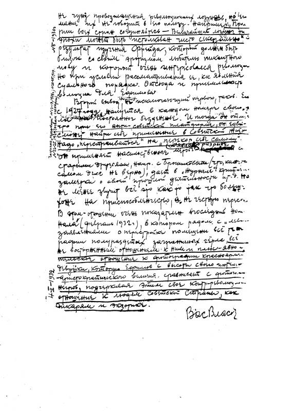 Высылка Власова очень тяжело отразилась на мне самом. Прежде всего морально. Я близко знаю Власова: в течение восьми лет и с полной ответственностью за свою оценку могу характеризовать его не только как советского, но и как активно преданного советского человека. Я уверен, что и в Уфе, где он проживает уже почти целый год, не откажутся подтвердить мою характеристику. Поэтому я очень тяжело переживаю высылку Власова и не могу ни на минуту отделаться от мысли, что она является в отношении его мерой слишком суровой.